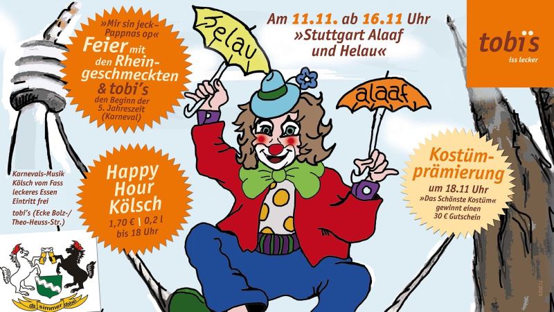 m 11.11.2025 ab 16.11 Uhr feiern wir mit Euch in unserer Veedelskneipe im Exil Stuttgart!