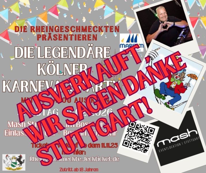 Stuttgart, ihr habt uns überwältigt! Unsere Karnevalsparty war in wenigen Minuten restlos ausverkauft – einfach unglaublich!